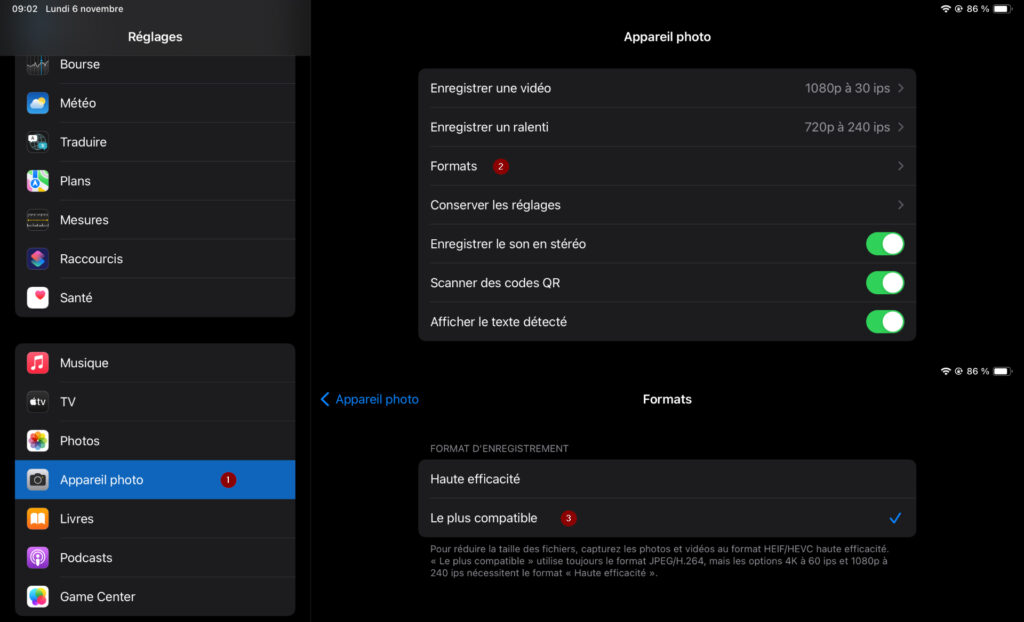 Accédez à Réglages puise Appareil Photo et vérifiez le paramètre suivant: